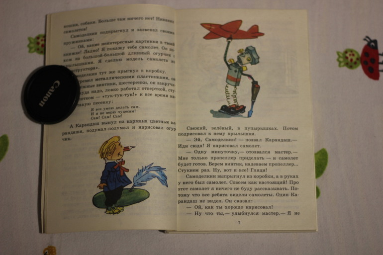 С карандашом и самоделкиным история еще не нашла своего конца. После тщетных поисков дома у себя и всей родни было решено, что книга ушла и больше не вернется. В интернете я обнаружила серию Та самая книжка, Самоделкин был как раз издан с илл. И. Семенова, то что нужно! Но ее не купить, нигде... Опять букинисты, цены, время и о чудо, из Озона приходит сообщение, что Самоделкин в продаже за 200 руб. Я сразу сделала заказ, меня даже не смутил тот факт, что издание другое. Книжка если честно меня немного разочаровала... Как только я ее раскрыла, она "посыпалась". Переплет никакой, страницы серые, тоненькие, половины иллюстраций нет, цвета не те... в общем одно расстройство. Но все равно стало как-то поспокойнее когда она оказалась у нас дома. Все таки хоть какая, но имеется! Все еще верю и надеюсь в скором времени заполучить нужный мне экземпляр...
