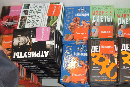Даже если вы забыли купон на скидку, вам предложат написать фамилию и имейл, и дадут вот такую карточку. Скидка действует НА ВСЕХ выставках и в магазине издательства)))