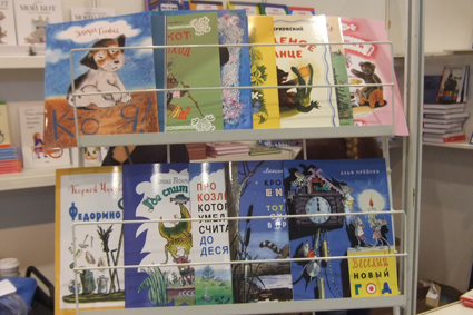 Интересный стенд у Нигмы, где старые книги и их новые братья стоят на одной полочке)))