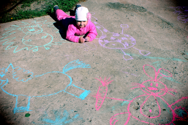 Спасибо! Я очень прониклась :))) Сегодня опять все дорожки возле дома изрисовали. А порисовать можно и дома карандашами, красками на бумаге.