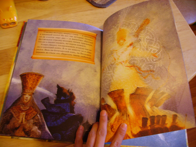 Не знаю, как в других книгах, но здесь страницы сильно склеены у корешка и на первом же свитке с текстом "былбогатырскийконь" - вот именно так, в одно слово (но в фото из Лабиринта скан с точно таким же Былбогатырскимконём). Ребёнкина мыльница не позволяет показать хорошее макро, но до утра не терпелось.
