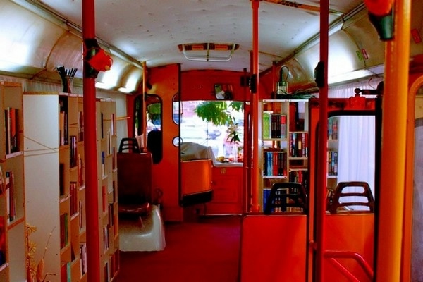 Это проект дизайн-студии Studio 8 ½ в болгарском городе Пловдив. В общественную библиотеку превратили старый, отслуживший своё троллейбус. На фотографиях изображена библиотека, расположенная на улице Отца Паисия в самом центре Пловдива. Именно по этой улице более 50 лет назад пустили первый троллейбус. А Отец Паисий - это болгарский монах 18-го века, автор первой Истории Болгарии.