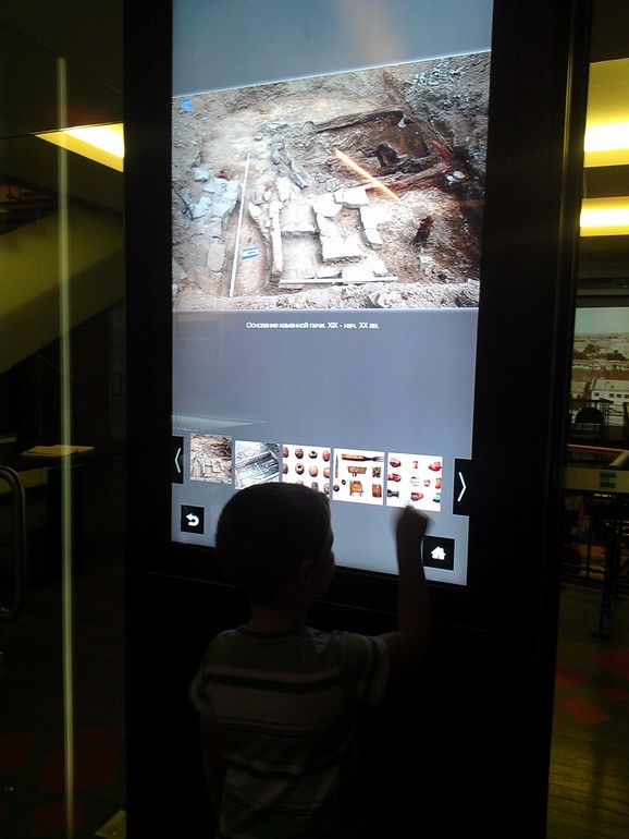 А так вообще Глеба в первую очередь раскопки интересовали, он залип у экрана в самом начале зала, где можно было посмотреть находки и фотографии из разных археологических экспедиций.