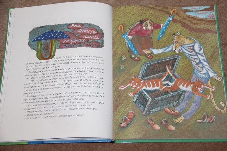 Из рассказов первой части выделил про сундук, который умел дублировать вещи и хохотал, когда леопард пытался избавиться от обувного крема, который жутко пах, так сильно, что даже закопать в землю не помогло - кроты стали возмущаться )