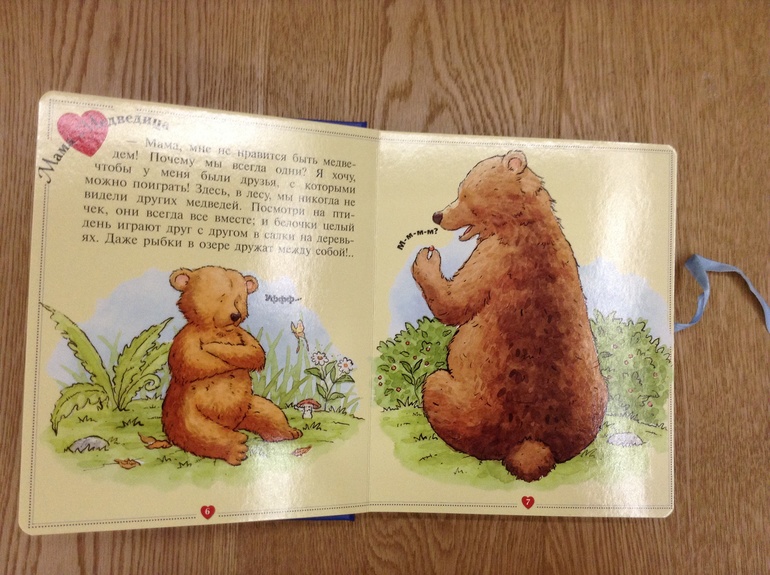 В этой книги 4 истории про мам и их малышей(медведица,белка,коала,гусыня).истории не длинные и незамысловатые,но добрые.иллюстрации в книги безумно милые,как раз благодаря ним у нас в доме и появилась эта книга,странички из плотного картона.