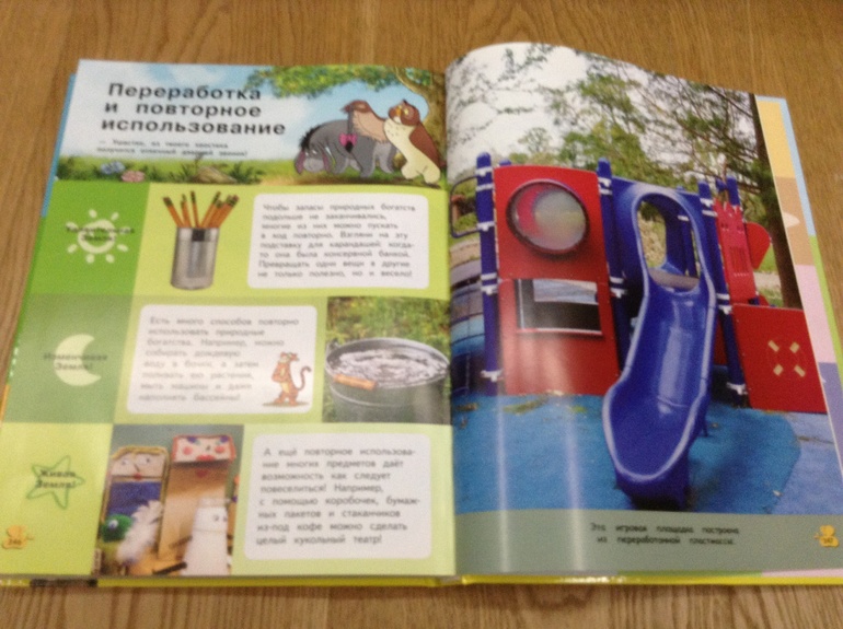 Энциклопедия мне очень понравилась.большая,красочная,интересная,хорошо совмещены мультяшные герои с фотоизображениями предметов о которых идет речь.бумага плотная,но при этом,по-моему,слегка бликует(слишком глянцевая).