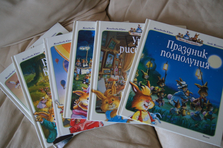 Начну с серии "Жили- были кролики" автор Женевьева Юрье, есть рассказы которые очень нравятся сыну, а есть которые слушает "краем уха", в принципе пары книг достаточно было бы, но я купила почти всю серию для себя))) из-за иллюстраций, очень мне нравятся.