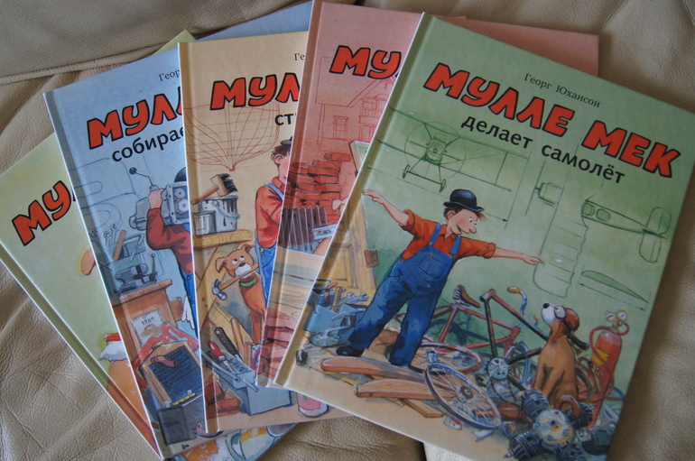 Серия из пяти книг про Мулле Мека, прям очень мальчиковая, частенько перечитываем ее, прям "маст хэв" каждого мальчишки. В книгах рассказывается про то, как герой в поисках приключений сначала построил автомобиль, потом лодку, потом самолет и т.д.))) Очень жалко, что уже нет в продаже книг про бобра Кастора, сыну бы тоже понравилось, тоже про всякую механику.