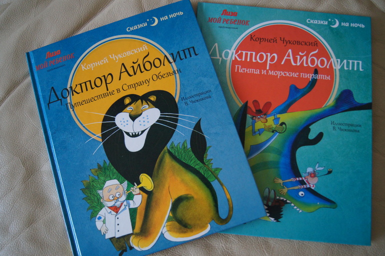 "Доктор Айболит" в прозе, купила в "Фикс Прайс", вообще смешно получилось, я брала для Никиты Айболита в прозе в библиотеке, там была старая потрепанная книжка с такими же иллюстрациями как в книжках "от Лизы", ну и купить я хотела книжку точно с такими же картинками, в Лабиринте уже таких книг не было и я заказала другую, а накануне того дня, как должны были привезти я зашла в Фикс Прайс и увидела "Доктора Айболита" с иллюстрациями от того художника которого и хотела, ну и купила, а книгу от Лабиринта не выкупила.))Сын каждый раз прям так переживает за героев хотя прекрасно знает, что все закончится благополучно и Бармалей в который раз останется ни с чем.