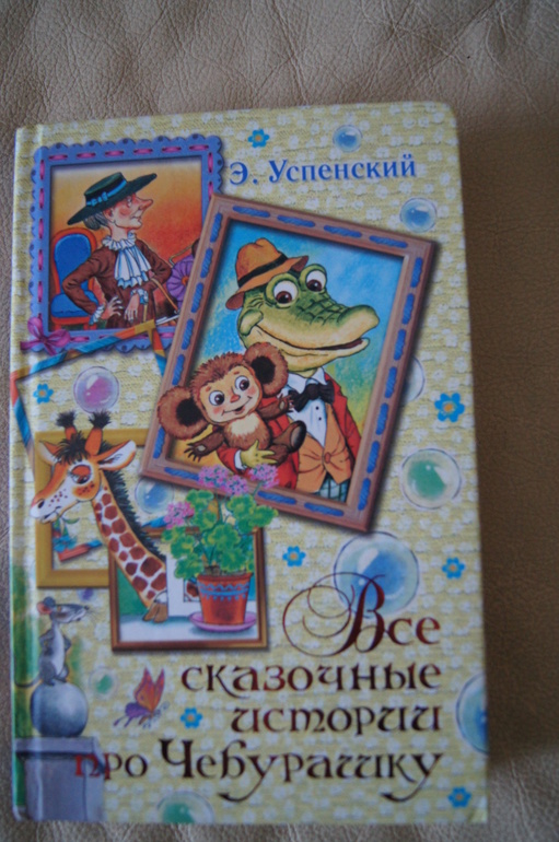 "Все сказочные истории про Чебурашку". Книжка недорогая, поэтому и не очень хорошее качество, страницы тонкие и просвечивают, но взяла, т.к. там все истории собраны вместе.