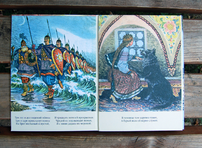 Открываем книгу - а там уже ждут все-все-все сказочные герои, которые первыми приходят на ум при словосочетании «Русская сказка». Спасибо Александру Сергеевичу. Тут и царевна, и богатыри, и Кощей, и волк…