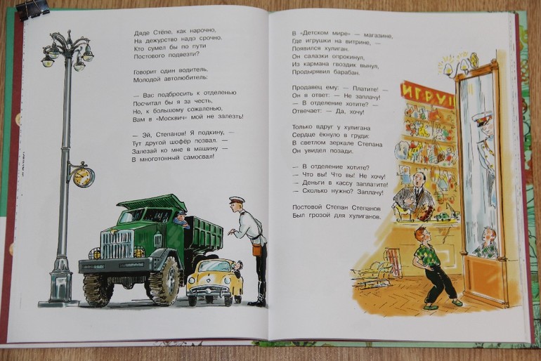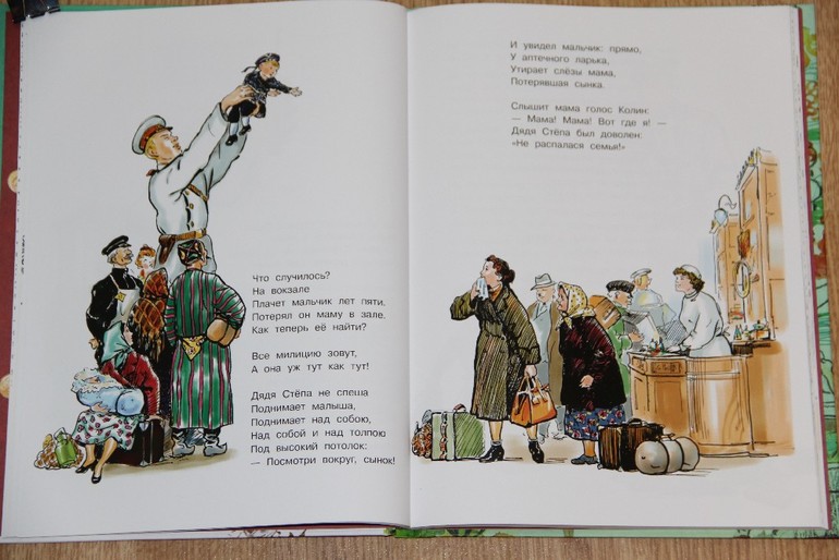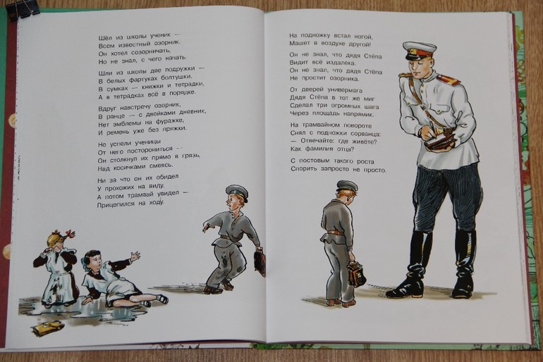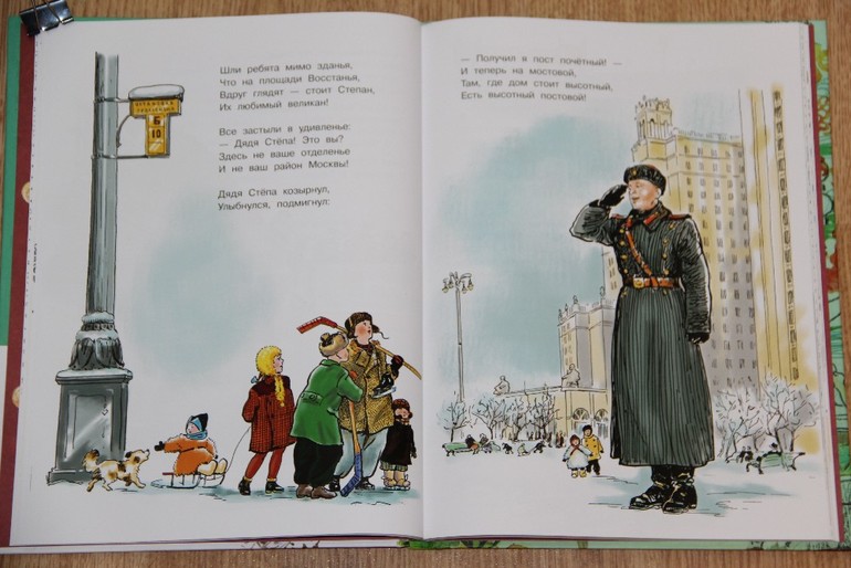 На счет дяди Степы хотела написать, что хотя и иллюстрирован он одним художником, дядя Степа в каждой части свой ) Там, где он милиционер мне даже показалось, что еще третий образ дяди Степы в начале стихотворения нарисован, так они не похожи друг на друга. А вот какой мне понравился больше, даже сложно сказать - все красавчики! )) Стихи и дядю Степу сфотографировала полностью.