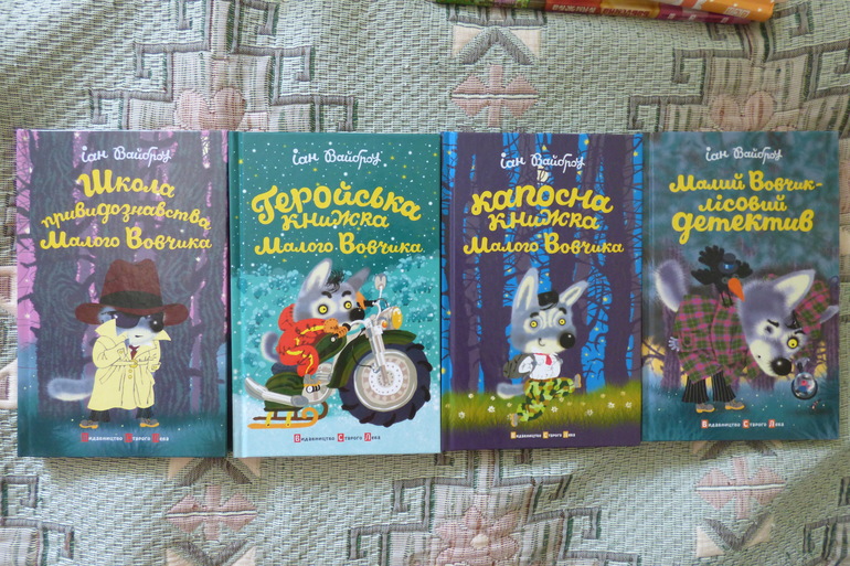 Пригоди малого Вовчика. Первую мы уже прочли. Как начали читать, не могла понять, что за книга, глупость какая-то. А смысл раскрылся в самом конце. Маленького волчонка отправляют в школу Хулиганов, чтоб он стал злым и хищным волком, хулиганом и выучил 9ть правил плохого волка. Волчонок очень старается. Интересно, что книга пересекается со сказкой о Красной шапочке :-)))) В конце он все-таки осознает, как плохо быть таким волком, что идя по этому пути, ты станешь несчастным и одиноким и жизнь твоя закончится и никому ты будешь не нужен. Он решает стать хорошим и вступает в общество скаутов(пластунів). Написана история, в виде писем Волчонка к родителям.