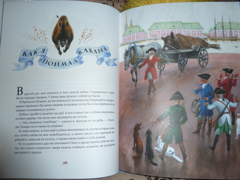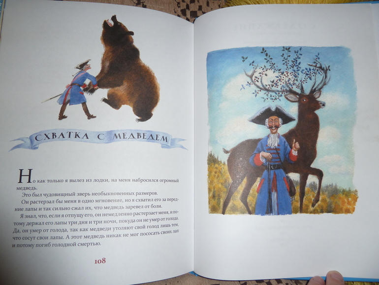 Я не спец по художникам. Не знаю других достойных(помимо Челака, Устинова, Елисеева(не понравился вообще)), которые рисовали Мюнхаузена. Устинов уж очень хорош, сравнивая с Челаком, одни и теже иллюстрации. Каждый разворот как картина!Шедевр да и только)Дублю быть