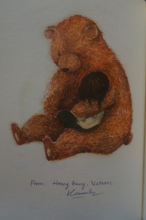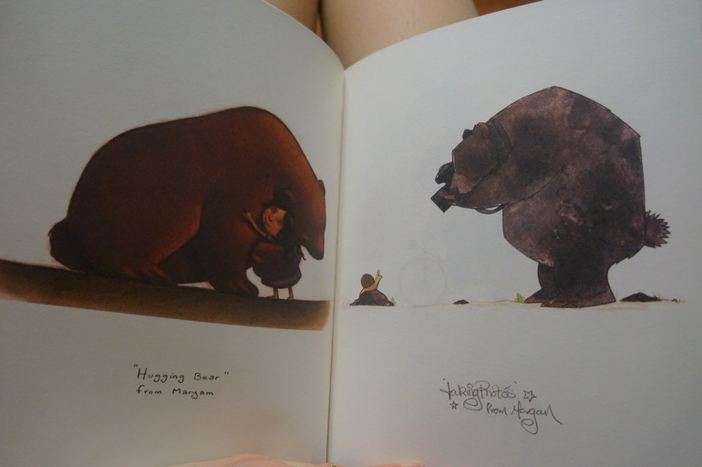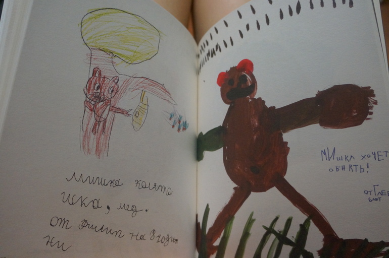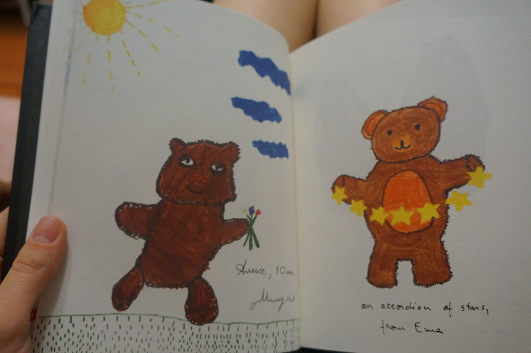 В ней нет текста, только картинки и подписи. Многие люди нарисовали мишек для этой книги. И все они с настоящей, с доброй душой.