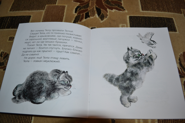 Давно заглядывалась на книги из этой серии, но не уверена была, что сын их оценит, а тут нам в подарок досталась эта чудесная книжечка, и сын сразу согласился её читать)) Наверное на волне любви к кошкам и собакам)) Правда для него всё же Чарушина читать ещё рановато, т. к. смысл ему пока непонятен...В целом книжечка очень понравилась и по оформлению, и по иллюстрациям))
