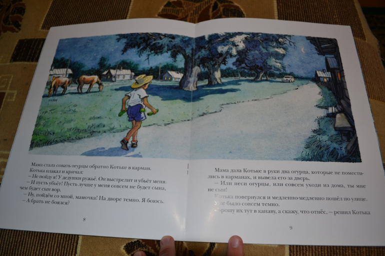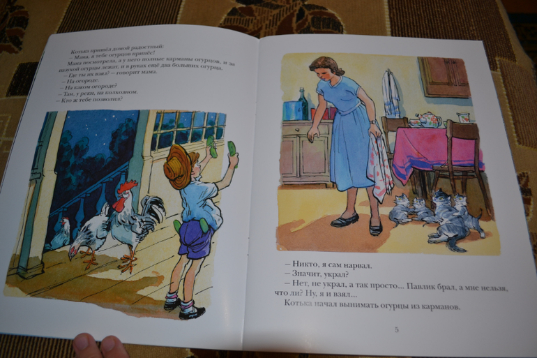 Эта книга уже конечно сложнее.Начали читать только в 2,3 г. И то я не уверена, что ребёнок понимает весь смысл, заложенный в рассказе.Но слушает))) Вообще конечно мама тут очень жёстко с сыном обошлась, но вот читаешь и понимаешь, что она права."Пусть лучше у меня совсем не будет сына, чем будет сын вор...".