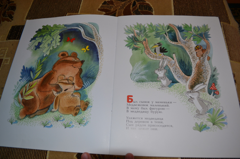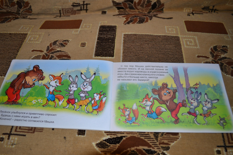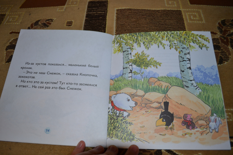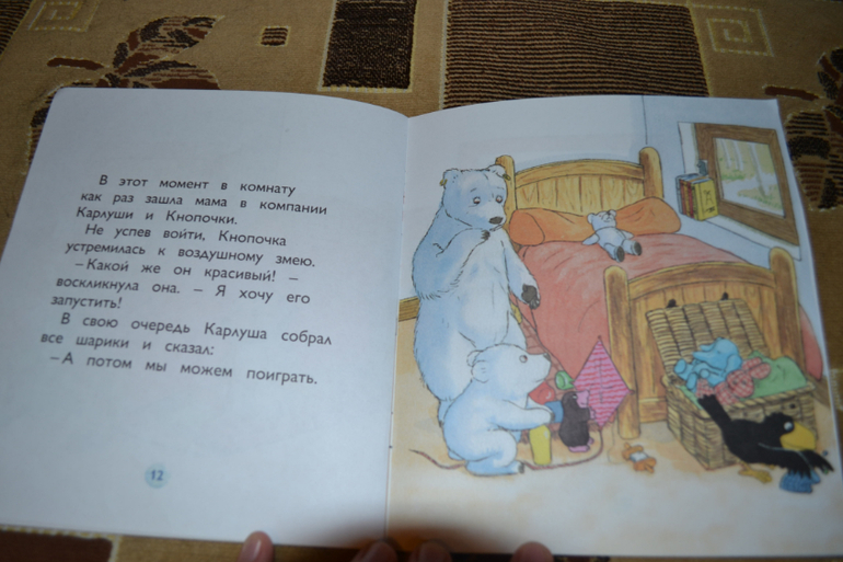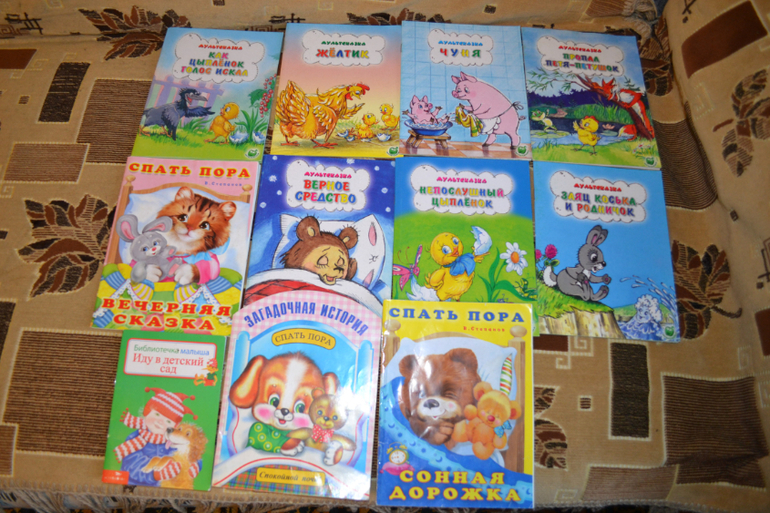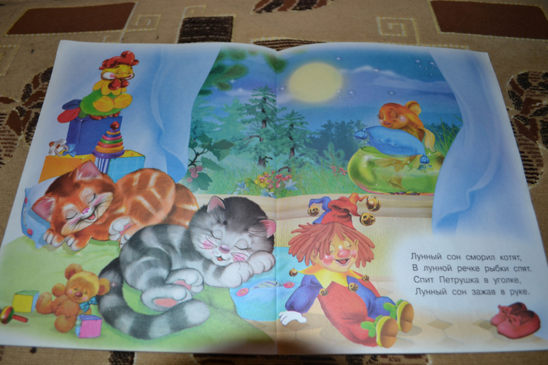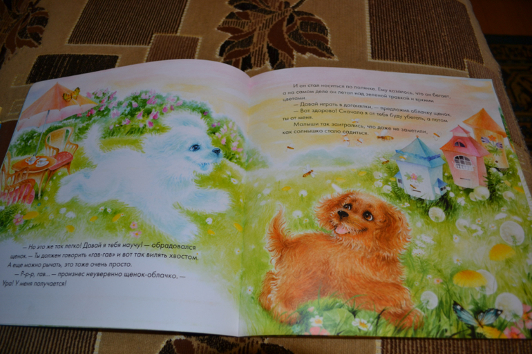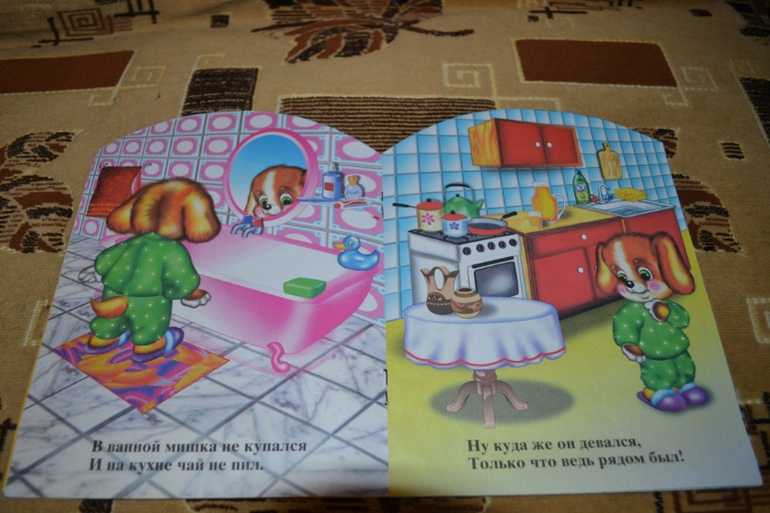 Эта серия книг конечно не блещет иллюстрациями, но она нам досталась по наследству и была сыном любима очень долгое время!В ней очень простой стишок про то, как щенок потерял своего плюшевого медвежонка, про то, как искал его везде, а потом нашёл в своей кроватке))Остальные две книги из этой серии просто пришлось докупить, т. к. они изображены как реклама в конце книги, и сын настаивал, что те книги тоже ему нужны)) Вообще все эти книжечки замечательно читать перед сном малышу))