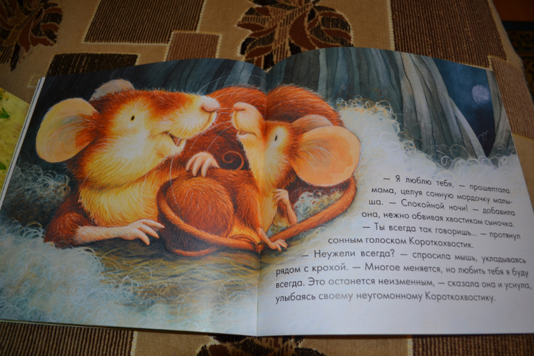 Хотела, искала, ждала эту книгу о материнской любви, однако для совсем малышей она, как оказалось, не подходит.На каждой странице одно и то же - мама-мышь и сынок-мышонок.Моему малышу долгое время было неинтересно разглядывать эту книгу.Читать начали совсем недавно.И то я не уверена, что глубокий смысл книги он сейчас понимает.Но книгу слушает и даже в иллюстрациях теперь находит что-то интересное для себя))