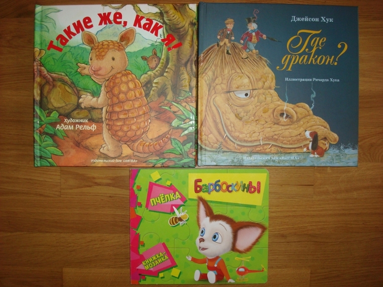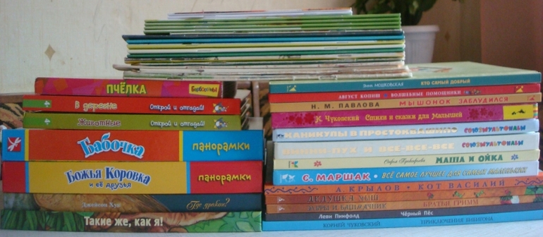 Поскольку я считаю, что с ребенком нужно не просто читать, а постоянно перечитывать, большую часть книг из продемонстрированной стопки мы читаем уже не по первому разу (а некоторые, как: Винни-Пух, Простоквашино, К. Чуковского - разу по 20-му наверно). Вот они, уже давно знакомые нам книжечки, какие-то очень любимые, какие-то не до конца понятые дочкой ( и )