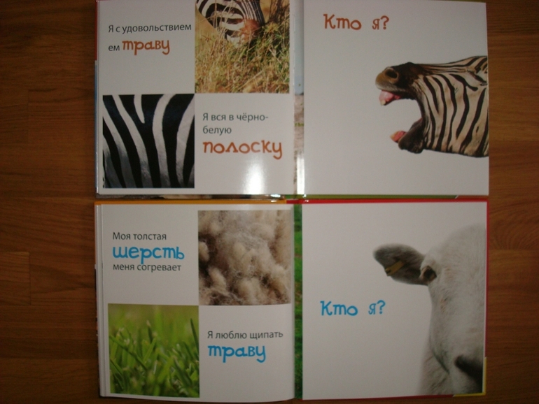 В этом месяце, чтение и рассматривание этих книг перешло в новое русло. Теперь за тем, что я читаю, она следит и водит пальчиком и когда я задаю ей вопрос: Кто я?, она кричит: Отгадай!!!