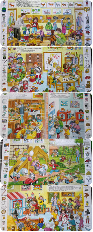 Ну и в заключении хочу показать наши новинки, настоящие немецкие виммельбухи приехавшие к нам из Германии благодаря замечательной девушки Mariya Lu. Получила я их только вчера, и не могу не поделиться с вами, рассказать что я в полном восторге это ничего не сказать. Они меня просто покорили, надеюсь на такую же любовь со стороны моего сыночка. Пока что надежно припрятанные ждут своей участи)))) Что хочу сказать, очень плотный ламинированный картон, яркие, сочные иллюстрации. В каждой книге по 16 страниц, формат чуть меньше чем у Осенней книги, но это не страшно.