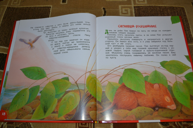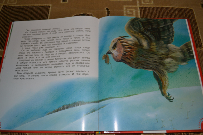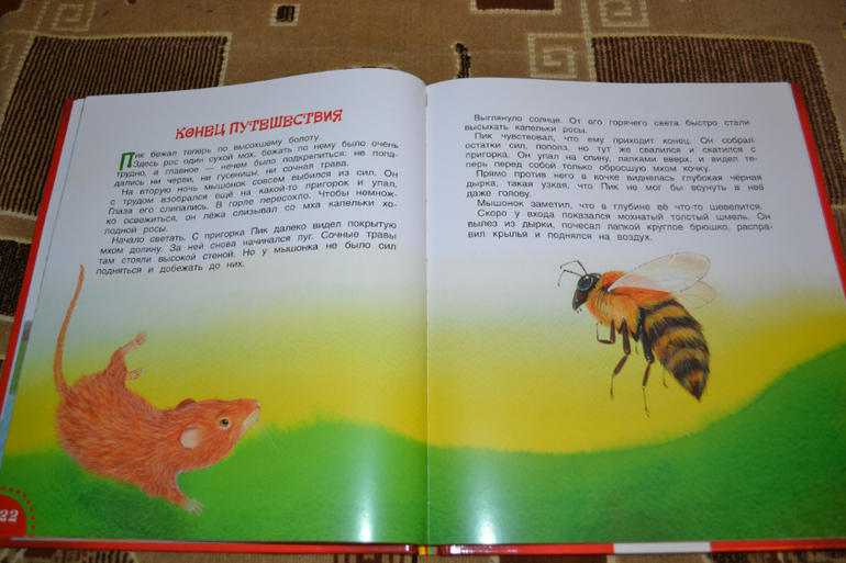 "Мышонок Пик" меня очаровал!Прочитала сама залпом (к своему стыду первый раз в жизни).Увидела эту книгу однажды здесь, в сообществе, и влюбилась!Какие нежные иллюстрации!При всей моей нелюбви и отвращению к грызунам, этого мышонка даже мне захотелось взять на руки))) Формат немного нестандартный, но небольшой, удобный.Обложка "пухлая", страницы тонковаты, но это ничего)) Прошу прощения за качество фото - никак не смогла найти место, где фотографии были бы без бликов...