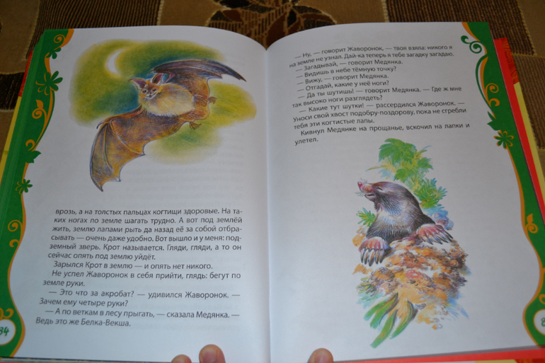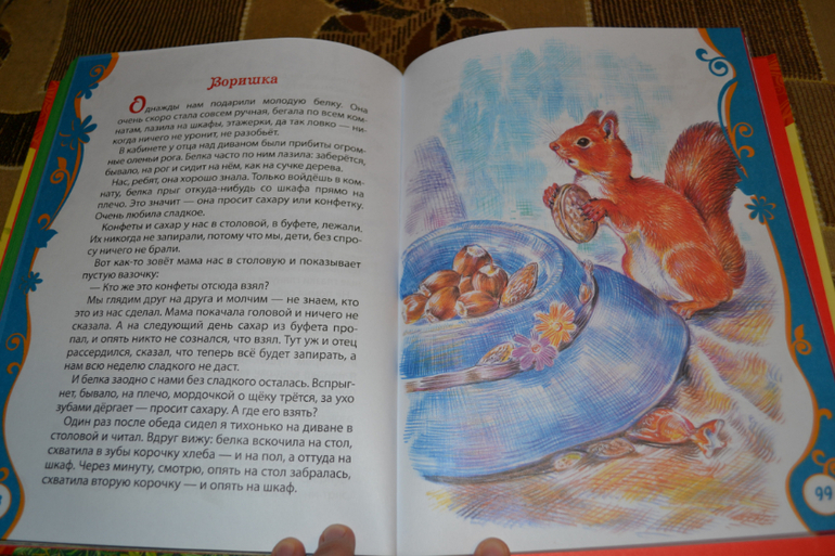 "Рассказы и сказки о животных" тоже не разочаровали.Очень понравились иллюстрации и вообще оформление книги.Это уже третья книга из этой серии (есть ещё сборник стихов Заходера и сказки), и всеми я пока довольна.Идеальный вариант для тех, кто не хочет покупать по отдельности книги этих авторов, но в то же время хочет познакомить своего ребёнка с самыми известными их произведениями.Думаю, что книгу можно читать лет с 3-3,5.