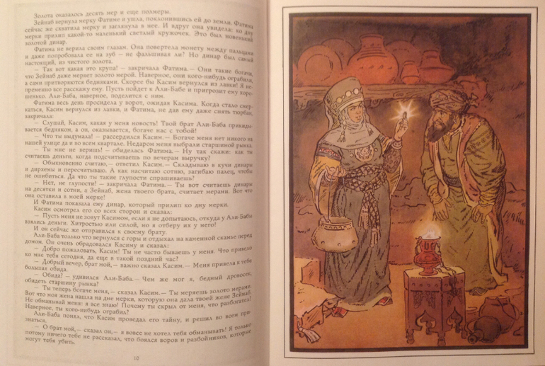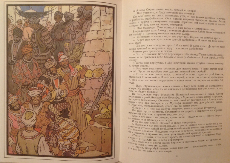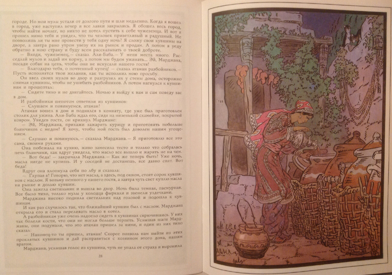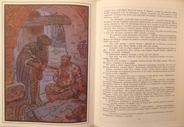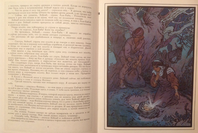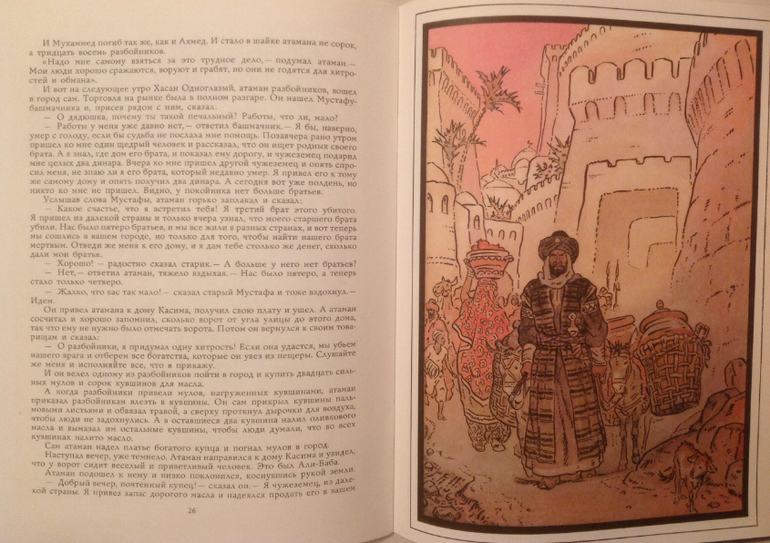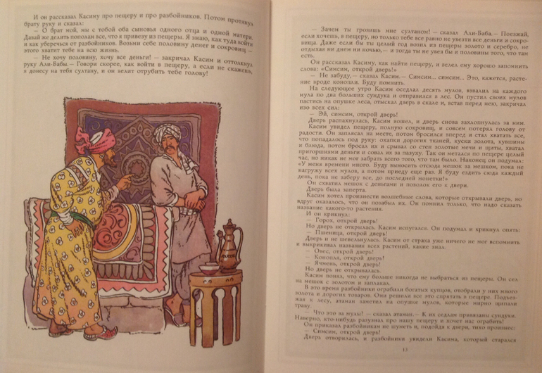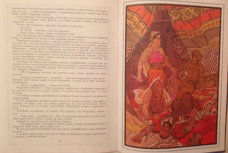 Не решилась отнести данную книгу к разряду букинистики, все-таки это достаточно новое издание 1989 года. Появилась она у меня, когда я училась в школе. Знаю, что многие в нашем сообществе ищут достойного Али-Бабу в домашнюю библиотеку и надеюсь, что издательства вспомнят и переиздадут эту книгу. Мне в ней нравится и прекрасный перевод Салье и рисунки Ольшанского, передающие атмосферу Востока. Лучшего Али-Бабу я пока не встречала.