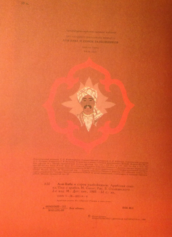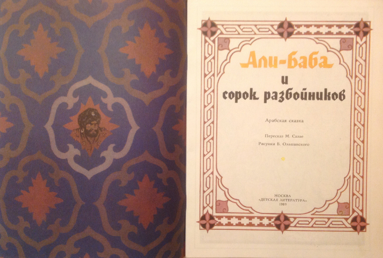 Али-Баба и сорок разбойников: Арабская сказка/ Перевод с арабского М.Салье; рис. Б.Ольшанского. Издательство "Детская литература", 1989.-32 с. Тираж 450000 экз.