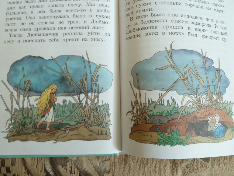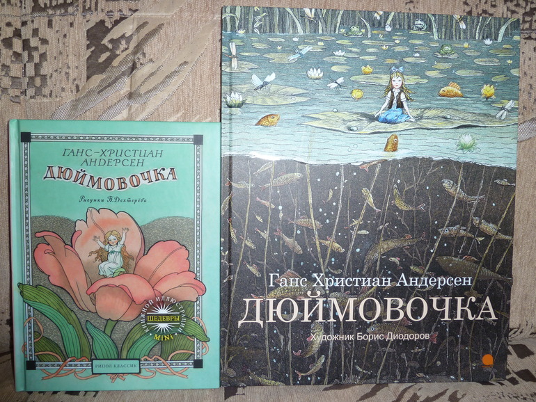 Дехтерев это возвращение в детсво, а Диодоров открытие...Меня лишь смущает как изобразил Дюймовочку Диодоров, а именно лицо, грубовато по мне(Текст не идеален, но иллюстрации детализированные, полностраничные перекрывают всё.