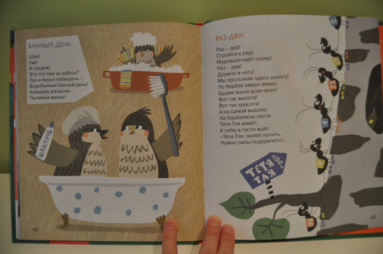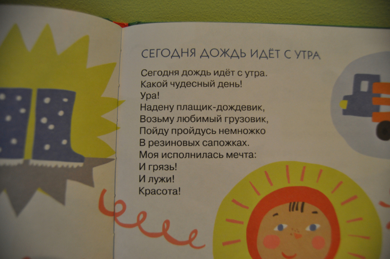 стихи тут как потешки, только современные. Я ее купила, когда Васе было почти 2 и очень жалела, что так поздно. Но там оказались стихи не только для малышей. Мы сейчас с удовольствием читаем и топаем по лужам со стихами из этой книжки. Недавно купила подруге в подарок на рождение дочки. Надеюсь им понравится.