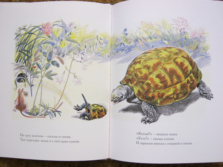 Фрукты я брала в Ашане, недорого. Книга на меловке и потому страницы смотрятся так ярко и нарядно. Тоже всегда пропускала такие книги, а эта понравилась.В сказках не везде текст неудачный и не все сказки в пересказе Шмидт. Я не жалею о покупкеСолнце смеется очень любила в детстве — про Ясочку и про Маринку. Я карандашный рисунок до последней черточки помнила, и ясочкин садик и снежный дом... как хорошо, что она нашлась на алибе!А в руки детям я ничего и не даю! Этим мелким варварам безнаказанно  можно давать только картонки, каталоги лего да старые книжки-дубли (( Теме даю, и тогда маленькие рядом с ним лепятся, смотрят