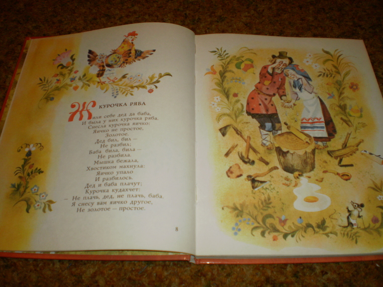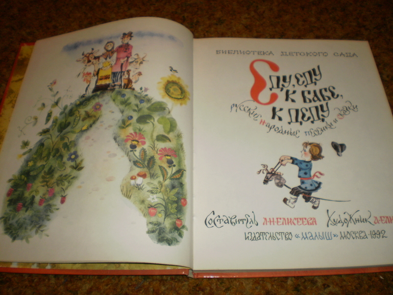Да, она классная — очень мне нравится, иначе я бы чокнулась от репок-теремков, так они мне надоели! А тут каждый раз иллюстрации разглядываю, потешки между сказками читаю ))