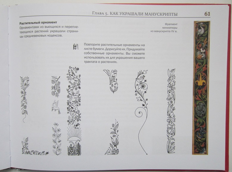 ) А вот об этом узнала впервые: "Гнилая кожа" и "Красивая кожа" - это названия книг по скандинавской истории! Можно узнать об альманахах и календарях, научиться записывать любую дату в числах "своей" эры, освоить технику коптского переплёта. Очень интересная глава об украшении манускриптов! Целая глава отводится "инженерной конструкции" книги: ещё раз закрепила, что такое "каптал") НО бОльшая часть книги - это советы и рекомендации по изготовлению различных книг! Очень хорошее дополнение-продолжение!