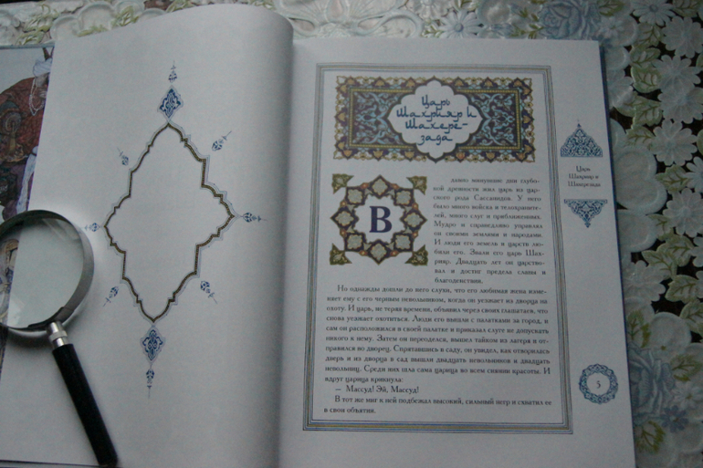 Обложка очень простит книгу, лакированный картон, иллюстрация из книги. Внутри превзошла мои ожидания. Хоть убейте меня - я не могу определить, какая использована бумага - она белая, плотная, матовая - как офсет и в тоже время шелковистая, как меловка. Никакого глянца. Орнаменты смотрятся чудесно, не мешают восприятию текста и иллюстраций, очень украшают страницы.