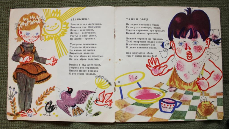 У меня вопрос / Дайте совет /Помогите выкупитьТакая вот моя детская книжка с незатейливыми милыми стихами без обложки. Поиск в интернете по строчкам из стихов результата не дал, может быть, кто-нибудь узнает в ней свою книжку? Или узнает художника? Буду премного благодарна!