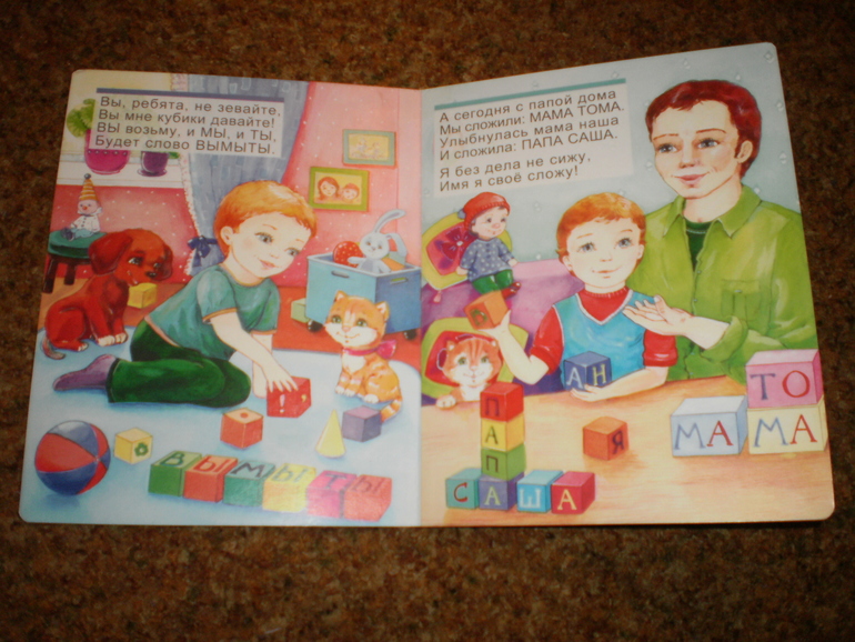 МОЗАИКА КУБИКИ - первая книга, которую Тема прочел сам, едва научившись читать. Ну и практиковалась у нас идея игр с кубиками из этой книги. Собственно, из-за этого разворота я книгу и покупала