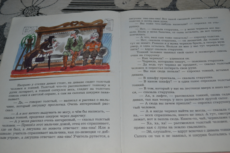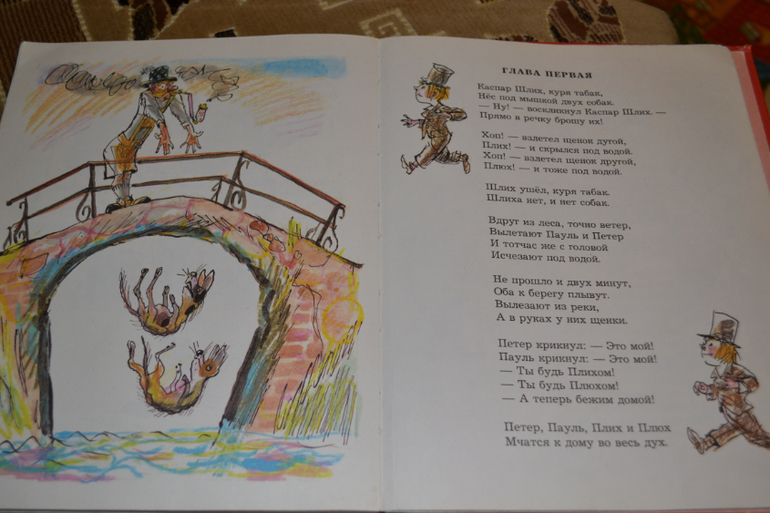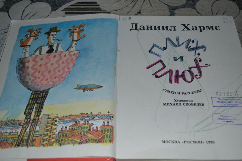 Самым понятным и логичным произведением показалось мне стихотворение "Плих и Плюх", хотя это не его собственная идея, а только вольный перевод книги Вильгельма Буша.Вот это стихотворение в отдельной книге я бы, наверное, купила для своего сына, если бы захотела познакомить его с творчеством Хармса.