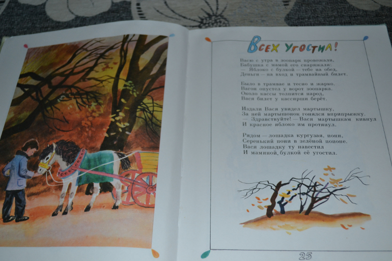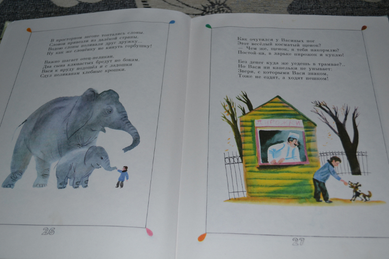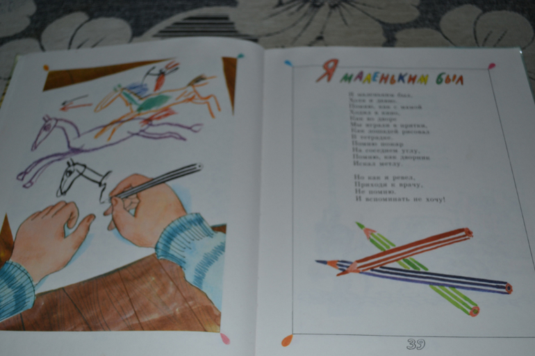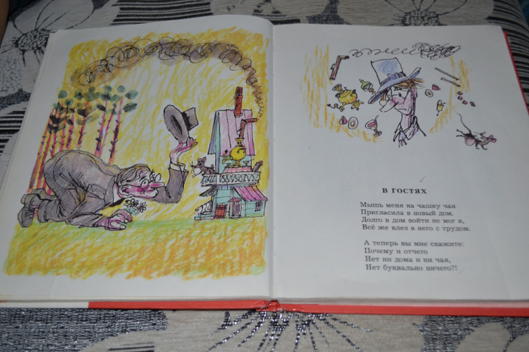 Есть у нас букинистическая книжка-малышка "Неумейка", её любим)) И почему-то от остальных стихов я ожидала чего-то подобного.Да и отзывы хорошие.Вообщем, была уверена, что его творчество будет мне по душе.Однако с первых же страниц я поняла, что далеко не все его стихи мне нравятся.К тому же рифма какая-то странная, нескладная, читаешь и периодически запинаешься, а кое-где она вообще отсутствует...Уже расстроилась и стала недоумевать, что же в этих стихах особенного, что их так много людей любят... Но потом вроде попалось мне несколько, которые понравились))