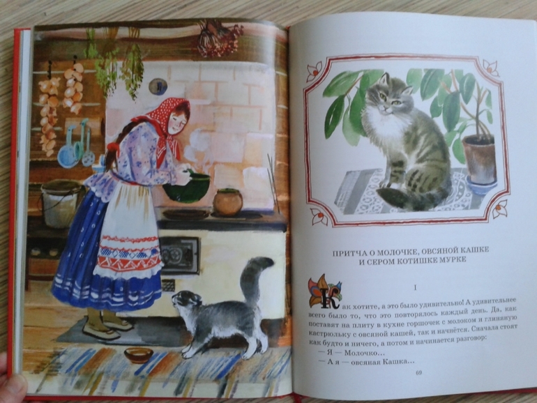 Некоторые иллюстрации мне казались раньше (когда доченьке был 1-1,5 годика) уж слишком реалистичными. Мухи эти вокруг, трупики мышек... Но вот моей малышке чуть больше 2-х лет и я на это не обращаю никакого внимания. Во всех сказках то кто-то ест кого-то, то пытается это сделать. А тут очень даже мило и без кровожадности все нарисовано.