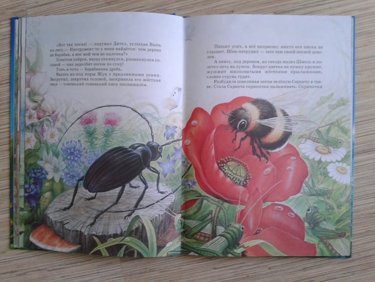 Долгое время дочка листала книгу и с восторгом рассматривала именно этот разворот с жуком и шмелем.