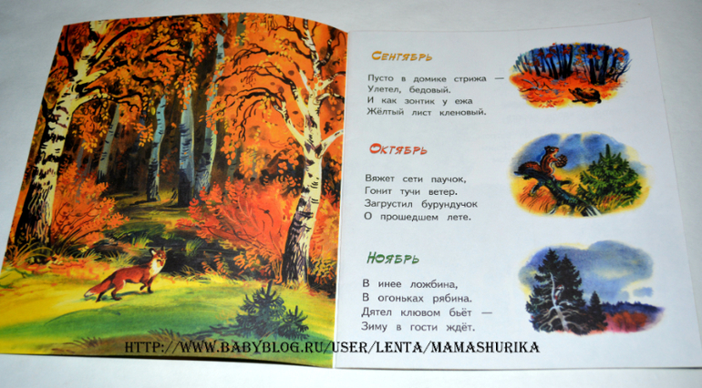 тоненькая, недорогая книжечка с приятными иллюстрациями в жёлто оранжевых тонах осени, с замечательными стихами. Такую книжечку удобно брать с собой на прогулку или в дорогу.