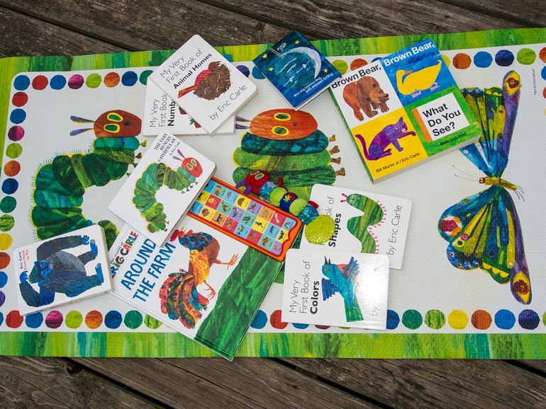 Сейчас моему сыну 1,5 года, американские книжки ему на вырост я почти не покупаю, благо, здесь они всегда есть в наличии и их тиражи не заканчиваются. Поэтому пока книги Эрика Карла в нашем доме имеют серьезный численный перевес перед книгами других авторов.