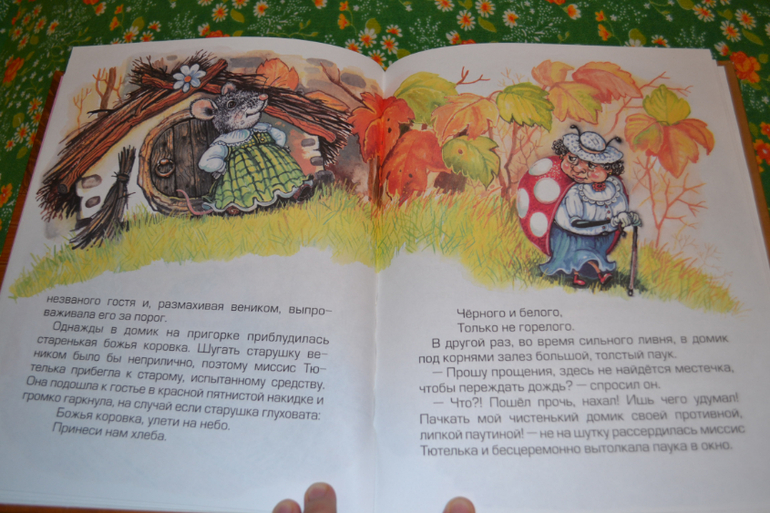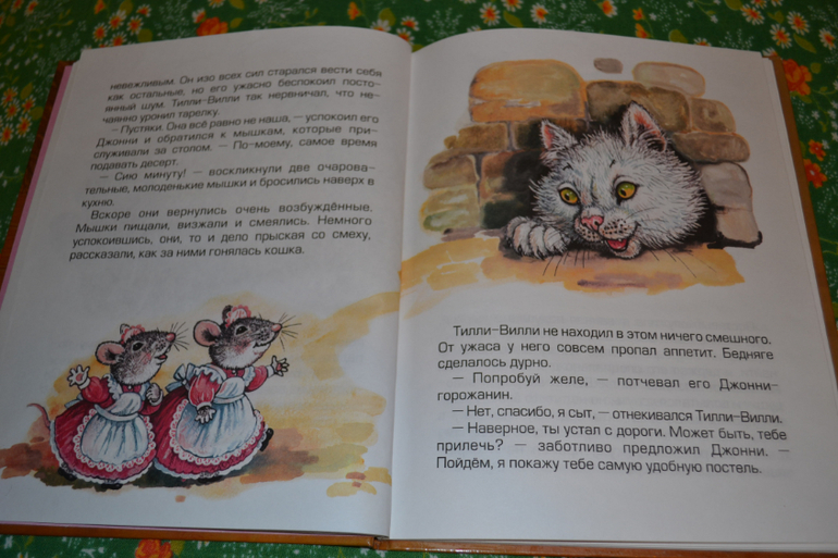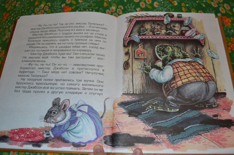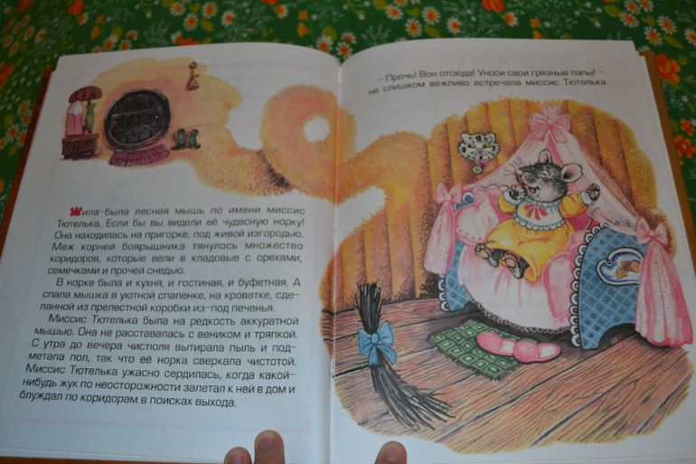 Кроме "Ухти-Тухти" я пока не читала никаких её произведений.Вопреки ажиотажу "Ухти-Тухти" тоже меня не особо впечатляет (хотя у меня книжечка из детства, та самая).Поглядываю на кролика Питера в будущем.Но вот решила взять эту книгу для себя, на пробу)) В отзывах пишут, что очень плохо, что нет иллюстраций автора.Я не читала эти истории с авторскими иллюстрациями, поэтому могу спокойно от них абстрагироваться) Да, иллюстрации не самые чудесные, но и не самые плохие.Их достаточно много.Сама книга в целом оформлена сносно (соответственно цене).Но вот сами истории меня разочаровали.Они интересные, НО заканчиваются ничем!Про Тилли-Вилли и Джонни-горожанина читала с удовольствием и интересом до самого конца.Но что это за конец?Как будто издатель пришёл к автору и сказал срочно дописать произведение.Автор села и дописала его тут же в двух предложениях и отдала в печать.Не знаю, может все истории у неё так заканчиваются - ничем?Вторая история мне не понравилась вообще.Миссис Тютелька - просто антипример!Да, она чистоплотная, но злая!Никому не была рада в своём чистеньком доме.Всех без стеснения выгоняла, только почему-то (в книге не сказано, почему) не стала выгонять мистера Джабсона, от которого грязи-то больше в 100 раз, чем от всех остальных вместе взятых.А когда она попросила его выгнать всех незваных гостей, он натворил в доме такое, что она 2 недели убиралась!После этого она сделала дверной проём меньше, чтоб он не смог войти (вот она - благодарность), но мистер Джабсон совсем не обиделся (!), и теперь мышка потчевала его на улице в то время, как другие мышки, приглашённые миссис Тютелькой, внутри.Вот и вся история...О чём она - непонятно...Однако о том, что книгу взяла, не жалею.Теперь буду внимательнее обдумывать покупку недешёвого кролика Питера...