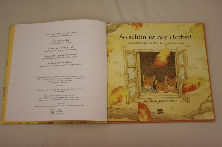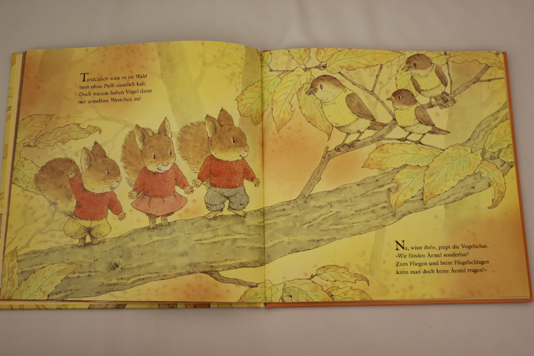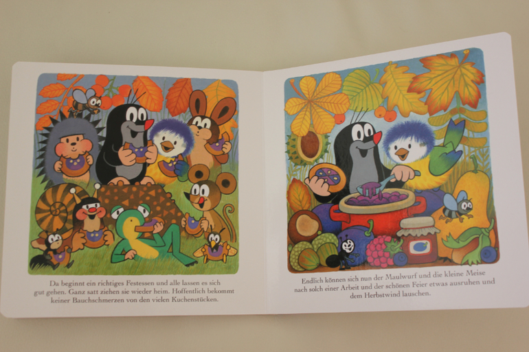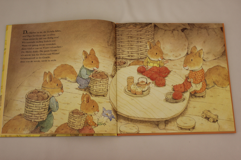 Хотелось бы поделиться с вами нашими книжками про осень на немецком языке. Одна книжка про кротика, а другая про семью белочек. Я думаю,что этот кротик и его друзья всем известны. Очень хорошая картонная книжка. Интересен также и сюжет про то, как кротик варил варенье, пек печенье и угощал друзей. Очень актуально для осени! А вот про белочек книжка-это что-то!!! Очень добрая и нежная история про семью белочек. Про ребятишек-бельчат в красных свитерах,которые связала ночью мама пока детки спали. И про то, как они видели этот красный цвет во всех проявлениях самой природы осенью. Очень красиво! А из остатков пряжи мама связала и папе шарфик! Смотрите сами! Много фоток!