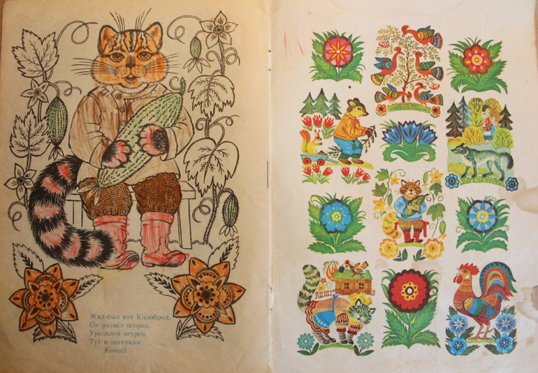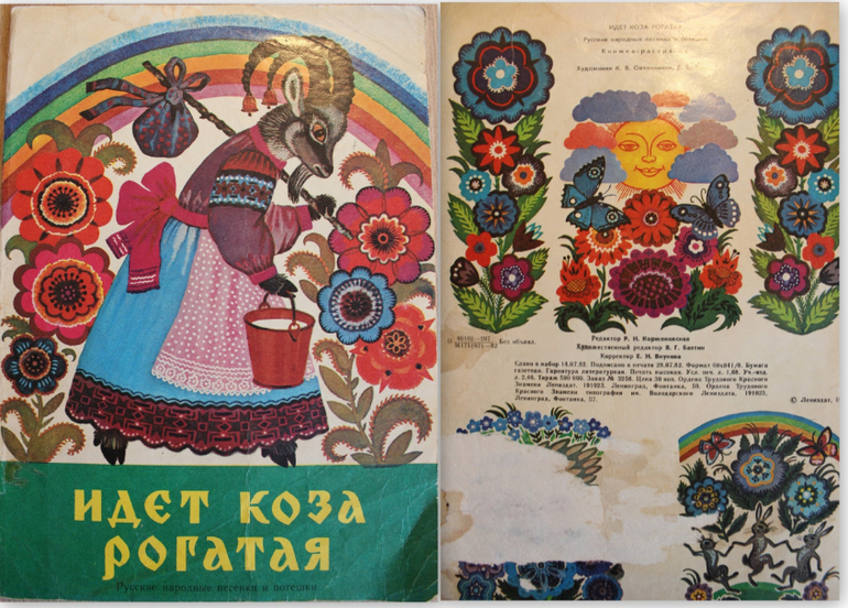 Идет коза рогатая, русские народные песенки и потешки, книжка-раскраска, худ.К.В.Овчинников, Е.Б.Тилес, изд.Лениздат, 1982