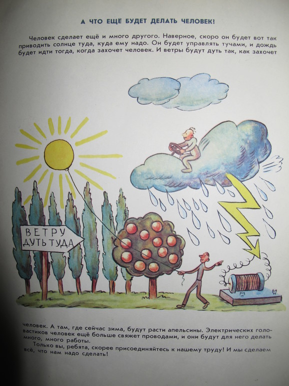 Но вот здесь как раз мне не симпатизирует текст. Может я не права, но я не хочу чтобы человек управлял тучами, солнцем, ветрами и дождями. А как же экология? Всё это может привести к непоправимым последствиям.