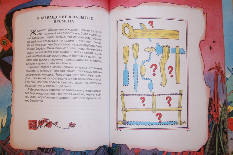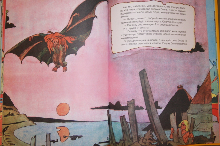 А герои! Как я рисовала в воображении всех этих королей. Особенно почему-то запомнился Золотой со своими золотыми самолётами. А злодеи? Какие злодеи! От колдуньи Корры де Ржи меня просто в дрожь бросало. Так и представляла её полёты над городом, её смрадное дыхание, разъедающее всё железо, отчаяние людей, вернувшихся обратно в каменный век. Тьму, тлен и безысходность.
