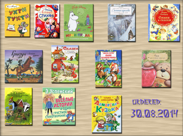 Зайдя в магазин книг на русском, я пришла в восторг от "Ужаленного ужа" и стихов с илл. Сутеева, но цены... С этими я не рассталась (они сразу стали хитами у дочки), но стала с грустью посматривать на интернет магазины. И вот в августе я узнала, что открылся и у нас ОзонРу. Когда корзина была уже переполнена, я наткнулась на это сообщество - и все, я пропала....